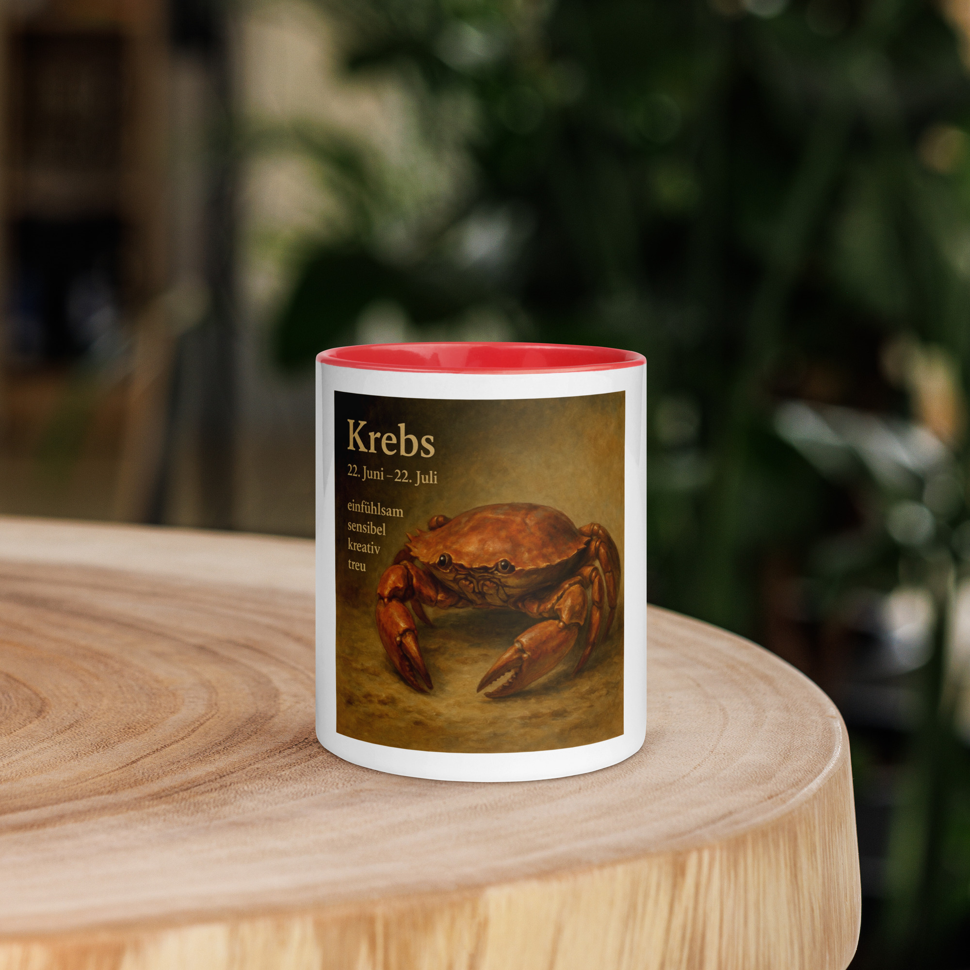 Das detailreiche Motiv zeigt den sensiblen Krebs – Sinnbild für Einfühlsamkeit, Kreativität und Treue. Dieser Becher erinnert dich daran, dir selbst und deinen Liebsten Aufmerksamkeit und Wärme zu schenken.