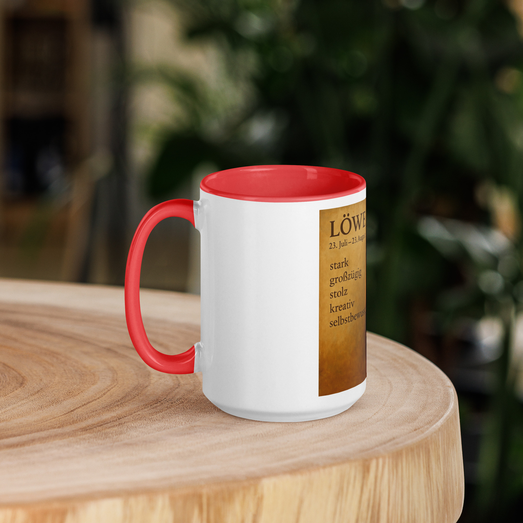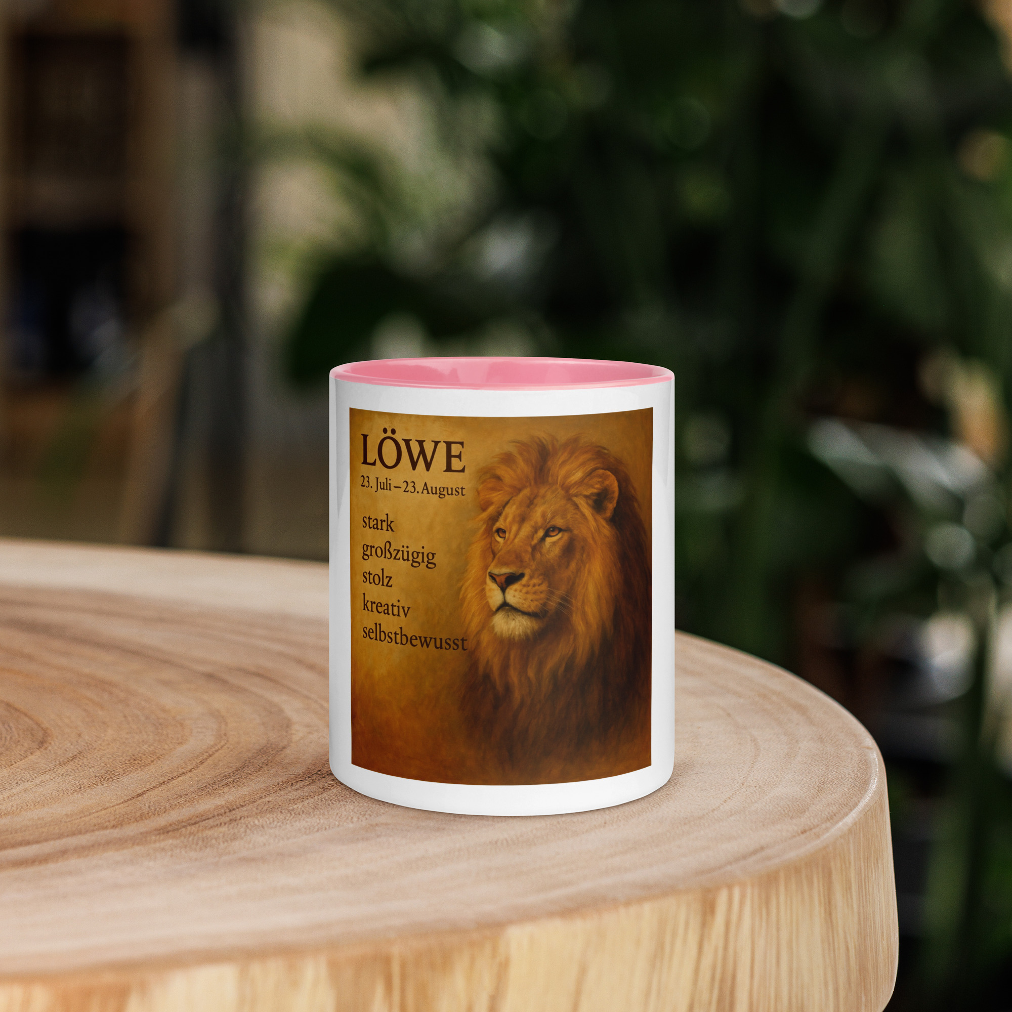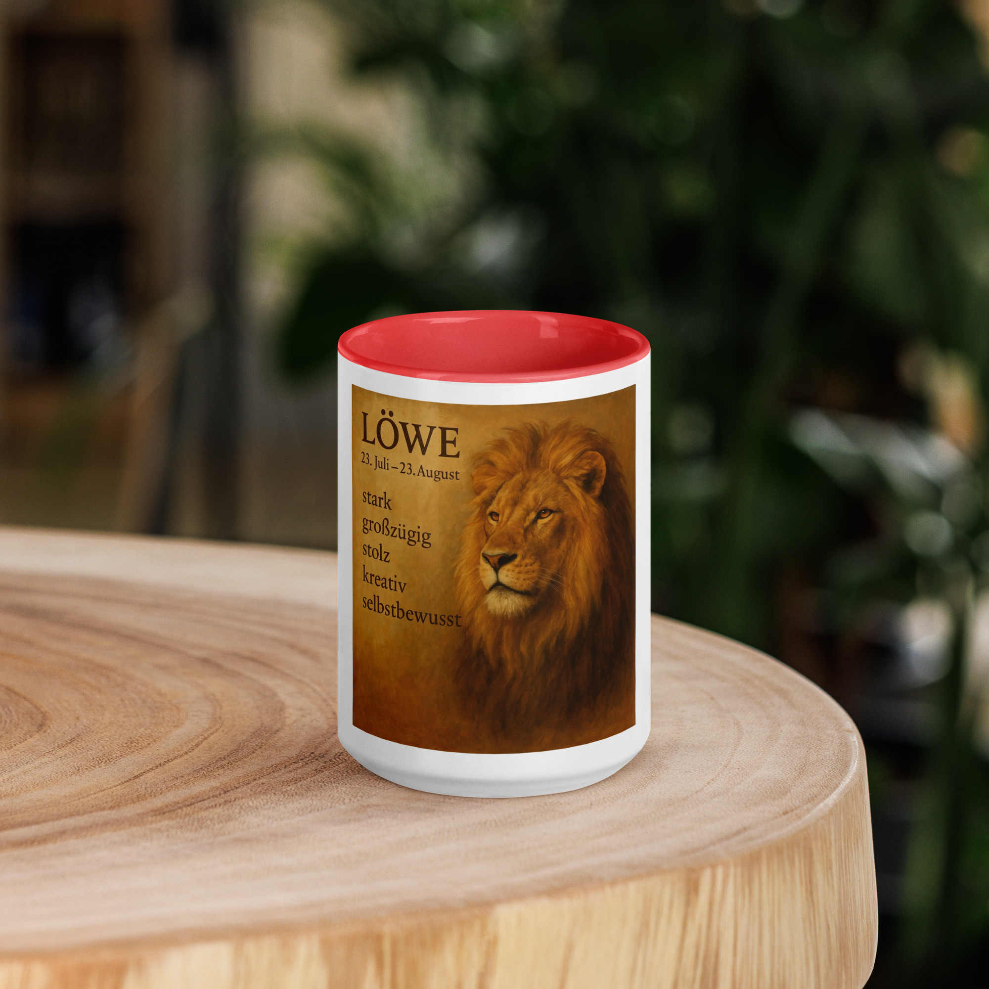 Das detailreiche Motiv zeigt den majestätischen Löwen – Sinnbild für Stärke, Stolz und Kreativität. Dieser Becher erinnert dich daran, selbstbewusst durchs Leben zu gehen und deine innere Kraft großzügig mit anderen zu teilen.